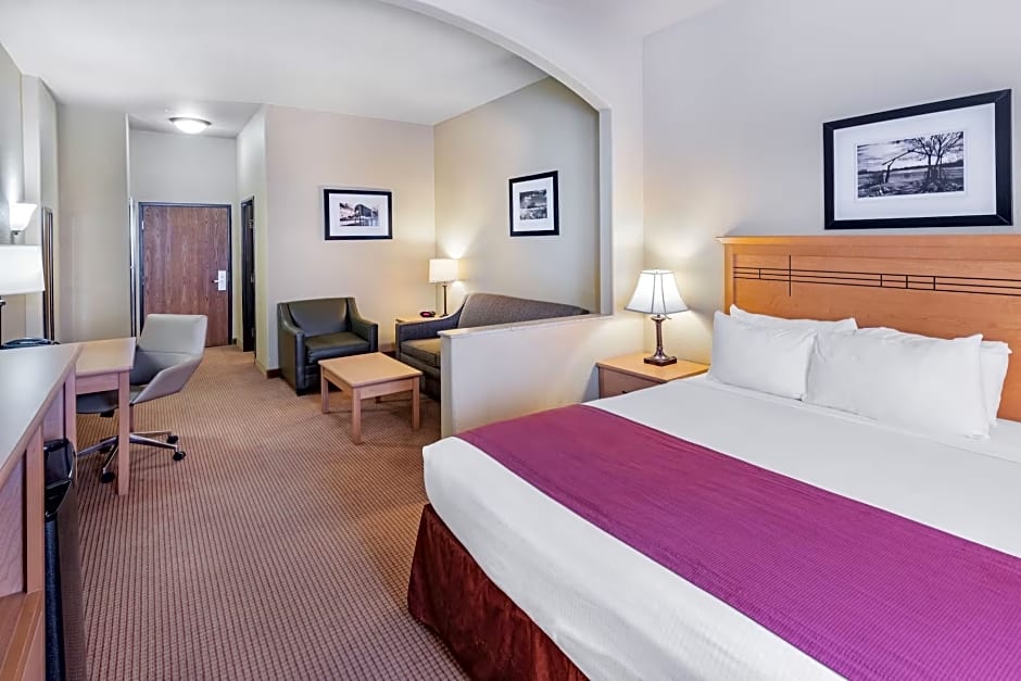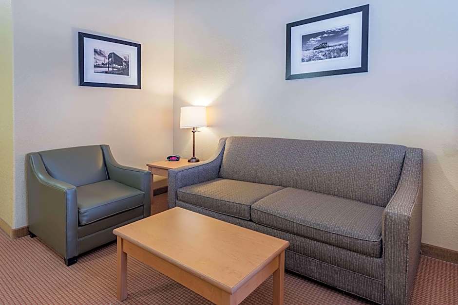 The suite provides air conditioning and a tea and coffee maker, as well as a private bathroom featuring a hairdryer.